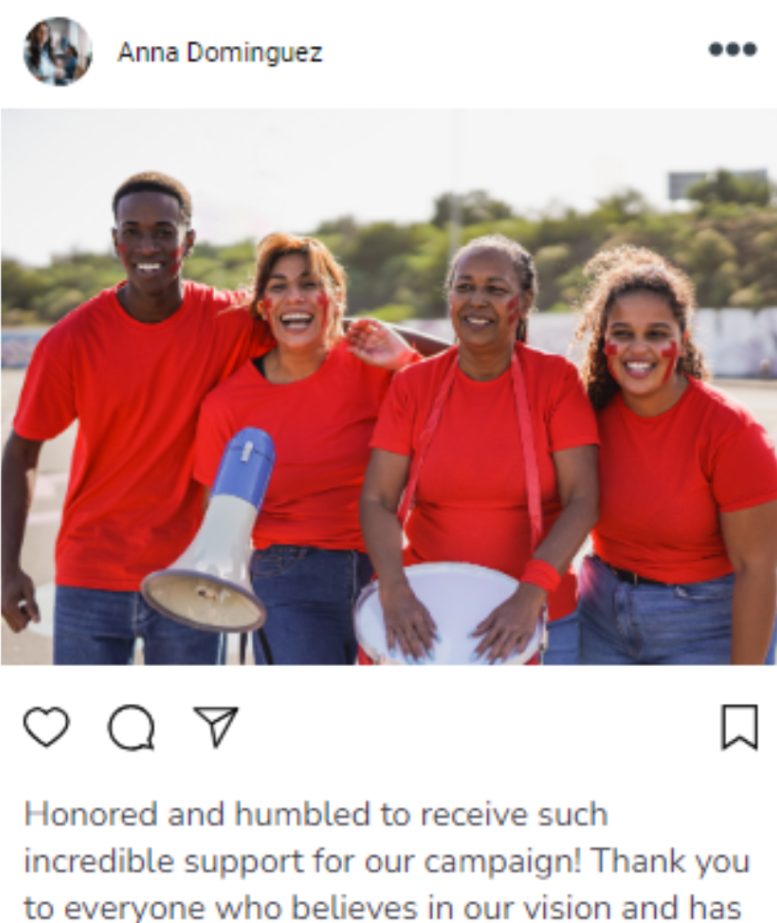 Anna Dominguez is a dynamic and passionate leader vying to represent her community in the upcoming political elections. Born and raised in the heart of her constituency, Anna has always been deeply connected to the needs and aspirations of the people around her.